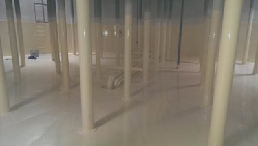 The tank is steel, encased in reinforced concrete and following an inspection it was identified that the internal tank casing, floor, first metre of shell and roof support columns all needed protecting.